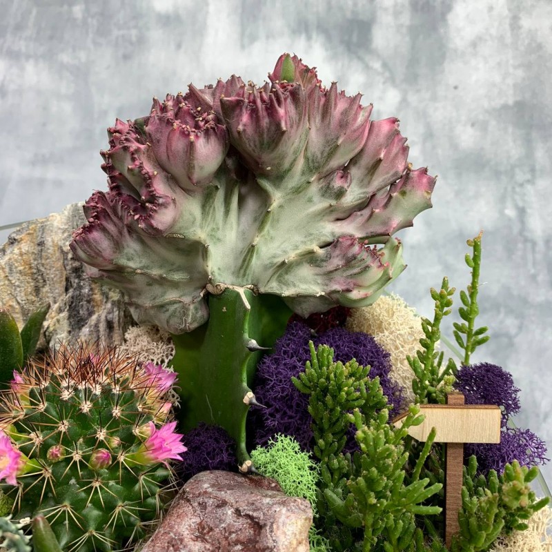 - Флора: Хавортия , Рипсалис, Крассула Хоббит, Кактусы микс, Эуфорбия Лактея Кристата