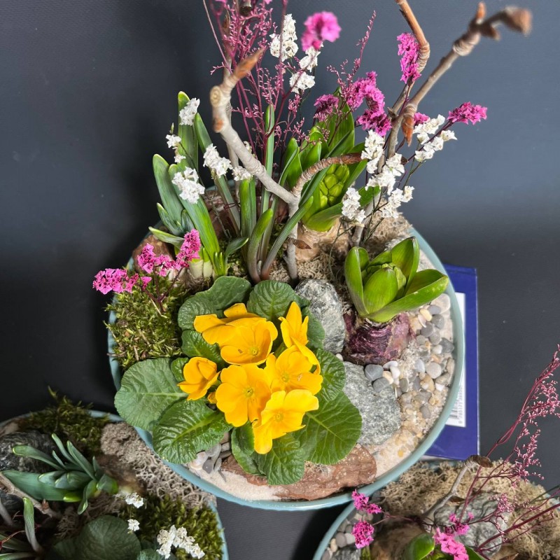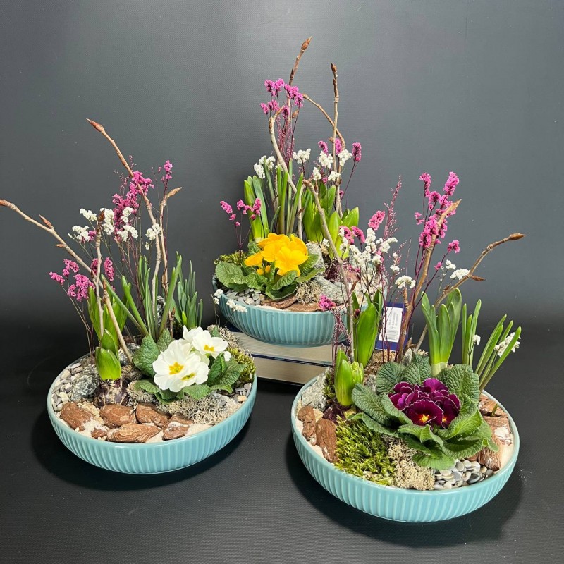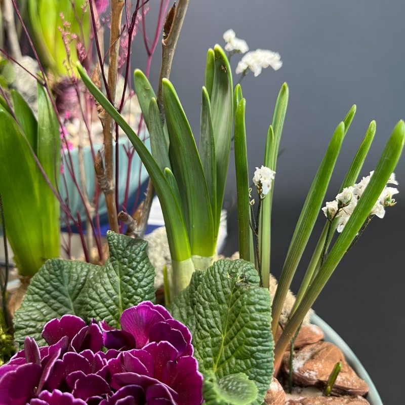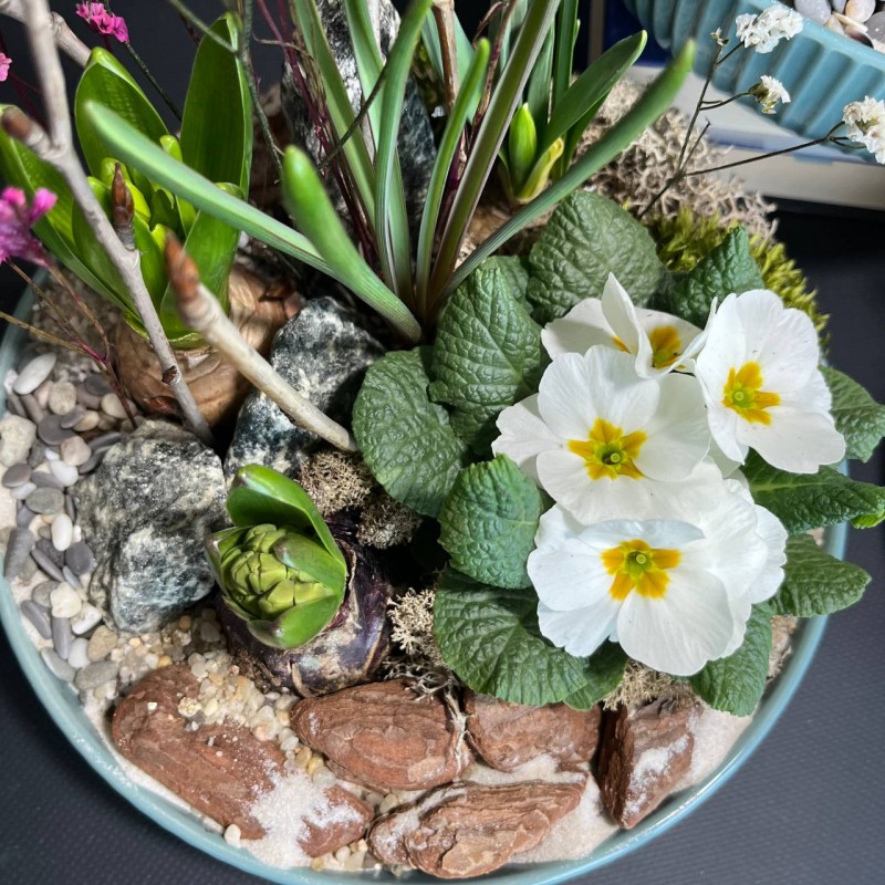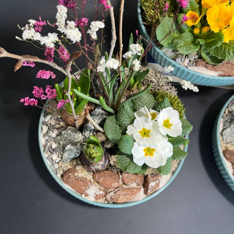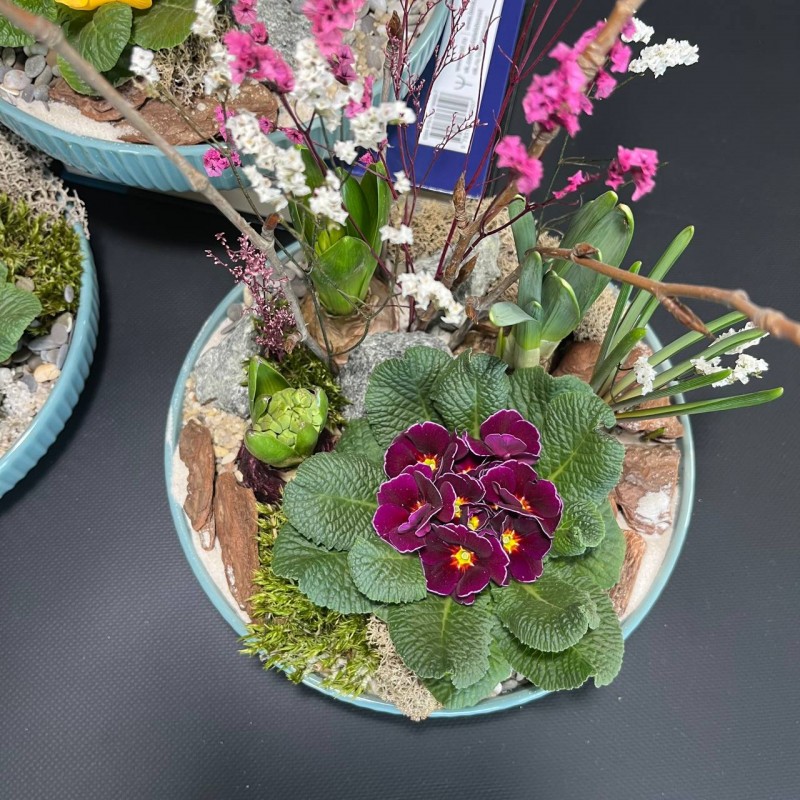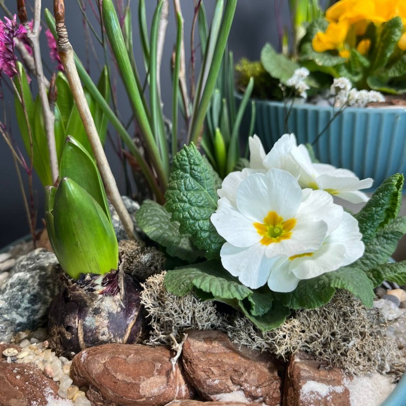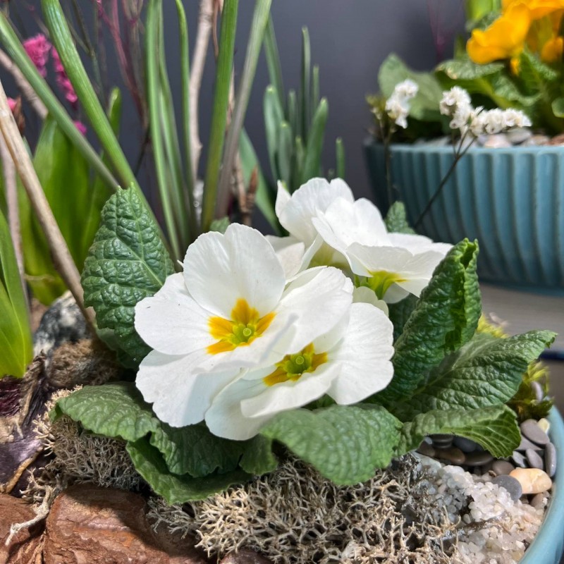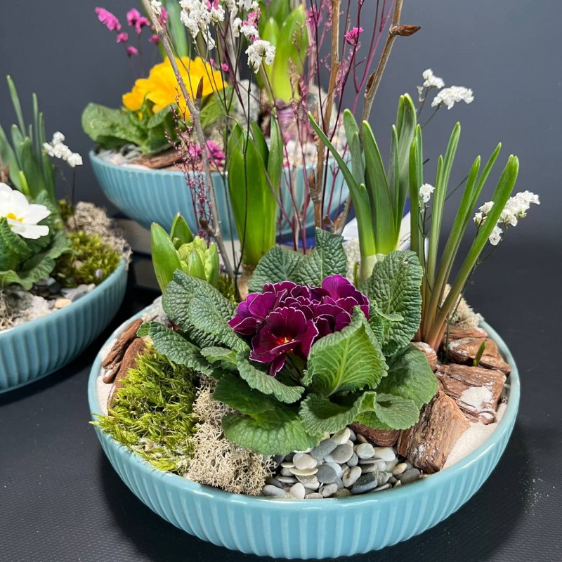Композиция в керамическом кашпо с первоцветами арт. 146